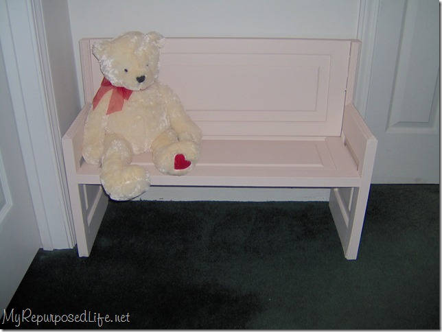 36. Old Door Child Bench: I made this last year for my sister-in-law for her to put her dolls on. I love door projects. There are so many things you can do with a door, that I tend not to do a project because I cant decide exactly which project to do. I currently have 3 or 4 doors in (via My Repurposed Life)