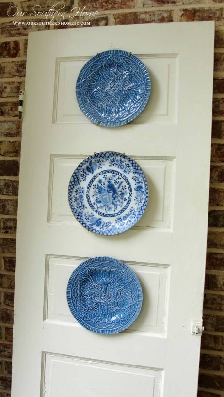 38. Thrift Store Door Plate Display: See how I used a $4 thrift store door to decorate our southern screened porch as a leaning plate rack display. Many other thrifty ideas can be found here! (via Our Southern Home)