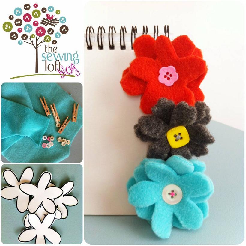 48. Flower Clips: Flower clips are easy to make and child friendly. Create clips from scrap left overs and pin away. Great on notebooks, lunch bags and more. Quick Craft (via The Sewing Loft)