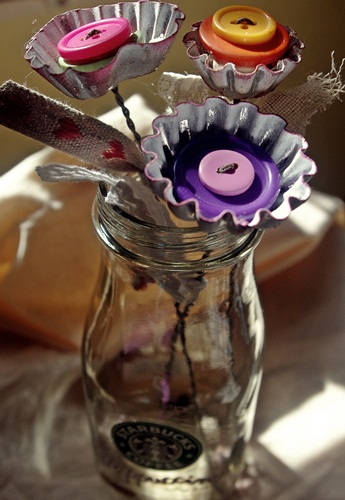 34. Button Flower: Here ya go, everything I know about making button flowers – enjoy! To make a button flower, you’ll need 5-6 smallish matching buttons, a larger button for the center, and if desired, a small button for the center of the… (via Artsy-Crafty Babe)