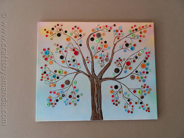 41. Vibrant Button Tree on Canvas: Buttons aren’t just for seamstresses you know. I always have a stash of buttons on hand for a variety of projects. I love using them with kids crafts, they are great for dressing up little projects, and perfect for a quick embellishment. Buttons definitely have more uses than just fastening a blouse closed. This button Read More (via Crafts by Amanda)