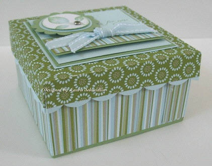 25. Mini Card Box: I received quite a few emails requesting directions for the “Cutie Pie” box (you can see it in this post here) that I decided to do a quick tutorial. I am a visual learner, so seeing pictures along with the directions has always been helpful for me…and I hope this will be helpful to you! Materials Needed: 7 1/2″ square piece of c.s. (this will be the bottom), 5 3/16″ square piece of solid c.s. and another 5 3/16″ piece of patterned paper (these will be the top), 2 strips of patterned paper (1 3/4″ x 12″ and 1 3/4″… (via Just Give Me Stamps)