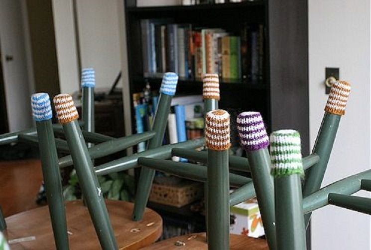 15. Flashdance Chair Socks: Ive been so excited to share this super practical, clever project I stumbled across on Ravelry the other day! Protecting expensive wood floors from scraping chair legs is so important, and I cant believe all the time and energy Ive spent finding, purchasing and applying those dumb little felt circles to the bottom of my chairs when I (via Simply Notable)
