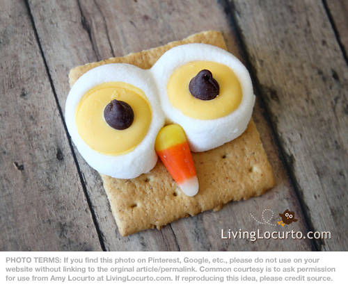 45. Owl S’mores: Easy to make S’mores that look like owls! Great fun food idea for Halloween, Thanksgiving or any party. (via Living Locurto)