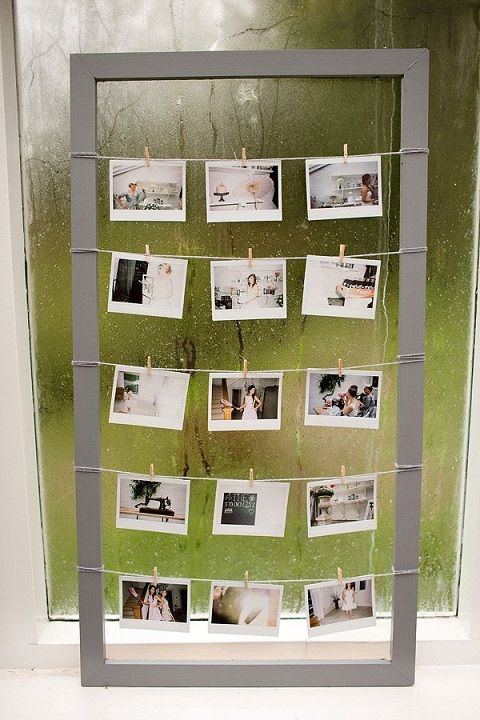 9. Polaroid Photo Frame: For our recent Rough Luxe inspired Real Bride shoot I created a Rough Luxe photo holder. A simple painted wooden frame with wool stretched across it, finished off with mini wooden pegs to grip on to your chosen images. Today I thought I would show you … (via Rock My Wedding)