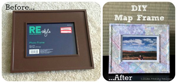 15. Map Picture Frame: We are big time traveling and road triping people, even if its just a day trip. We have tons of pictures just only one issue… they are all in the computer and not on print. So I decided to go int… (via Lillian McKay)