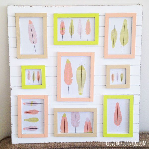 19. Picture Frame Revamp: Seeing as Number 2’s nursery is still a blank canvas in terms of decor, I decided to inject some colour into the mix by revamping a white wooden frame using some washi tape (of course!) and some pretty pictures – what do you think? Chosen colours… Getting started… The pictures I drew up in Adobe (via Clever Bird Banter)