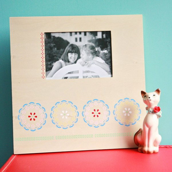 24. Fast and Easy Stenciled Frame: Hi guys! I recently bought these sweet Martha Stewart adhesive stencils when I had a coupon at the craft store. I thought well, I bet they lose their stickiness but I’ll give them a try, so I did. And I have to say, I am in LOVE! Not only are the designs cute, but they really do stick nicely to (via My So Called Crafty Life)