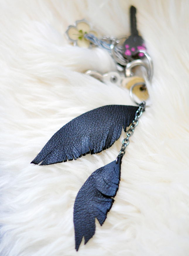 50. Leather Feather Key Danglers: Super easy DIY leather key chain or key fob makes the perfect gift or keep it for yourself. (via …love Maegan)