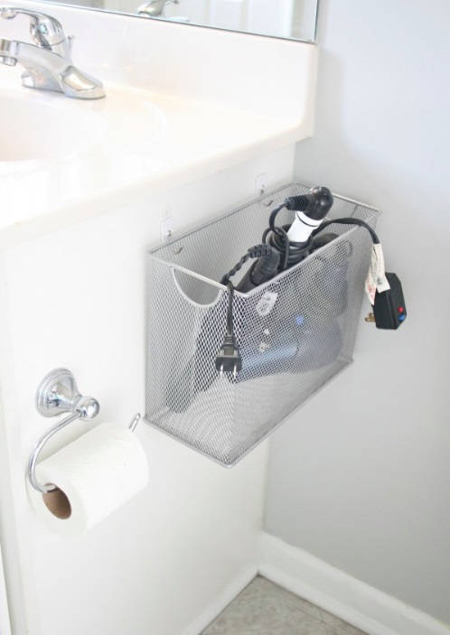 9. File Box Bathroom Appliance Storage: Okay, confession time. I’m not exactly sure what made me this way, but I have always been super hesitant to put my still-hot straightener and hairdryer away thinking they will start a fire. Yes, I know that’s a long shot, but I have been known to turn the car around on my way to work to make sure I (via Dream Green DIY)