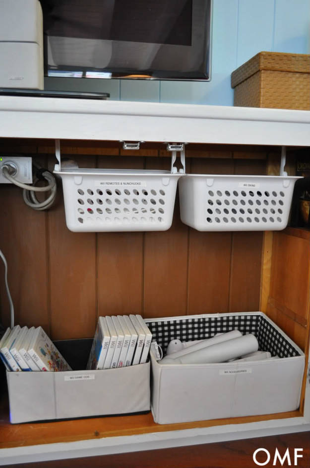 6. Hang a few baskets for More Shelving Space (via Organizing Made Fun)