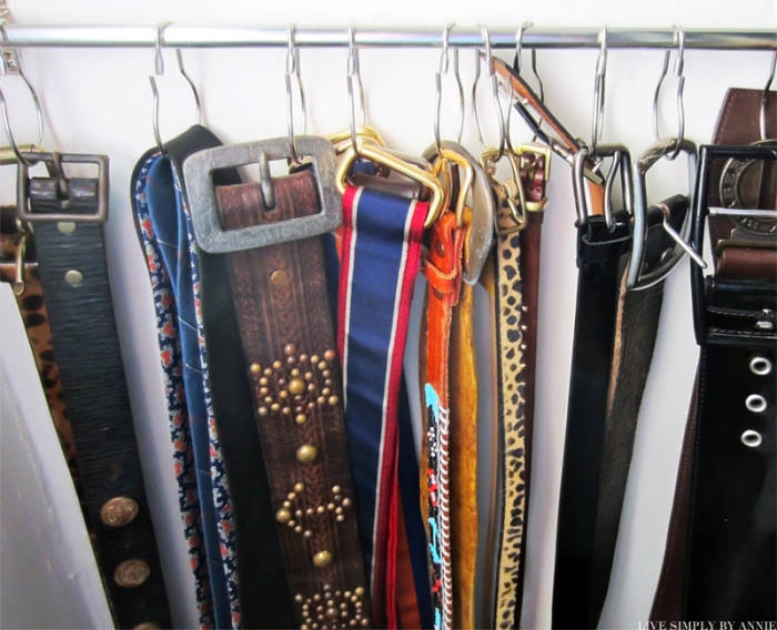 7. Use Show Curtain Rings as Belt Hanger: In the case of the Madrona Master Closet the verdict was clear: my client needed a system for her belts. Previously they had all been crowded onto two large hooks. The result was a muddle of vertic… (via Live Simply by Annie)