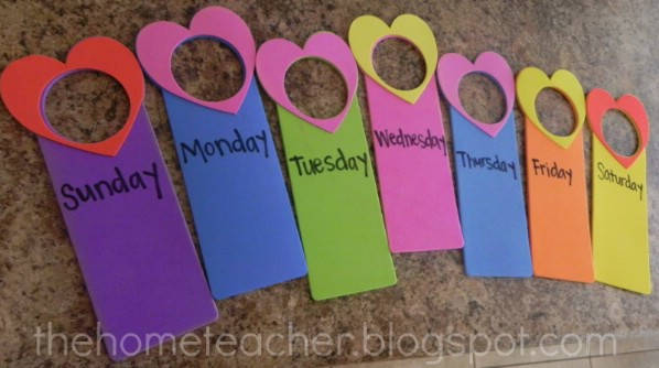 31. Foam Door Hangers for Closet Organization: First, I have to admit something: I am obsessed with the dollar store. To the point where I may need some intervention. My biggest weakness is for all the cheap organizational stuff. I find myself buying plastic bins with no idea what I will use it for and they just collect in a happy, one-day-I-will-use-them (via The Home Teacher)
