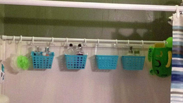 34. Add a Second Shower Rod for Extra Bathroom Storage (via Teruterus)