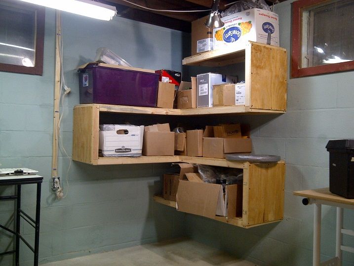 21. Corner Shelving: made this wood thing to put things on. materials:one sheet of 3/8th plywood5 2×4’s screws (via doctorpartlow)