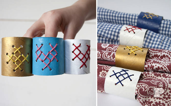 29. Easy Napkin Rings: DIY tutorial for fun napkin rings out of painted and embroidered toilet paper rolls. (via Pysselbolaget)