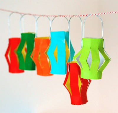 27. Miniature Lanterns: These little lanterns are about 2″ tall and are made from a toilet paper tube. You can make two lanterns from each tube. They are adorable individually and hung as a group for a garland. You can also forgo the… (via The Crafty Crow)