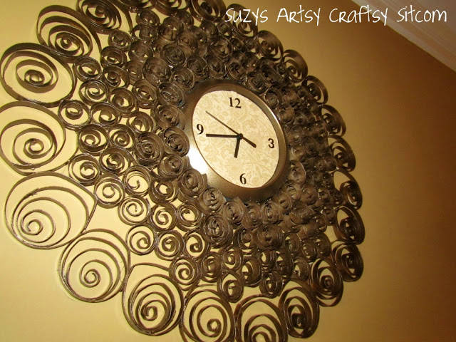 44. Faux Brass Wall Clock: I redecorated my study about a year ago, painting the walls a deep gold and adding a whole wall of bookshelves in a dark wood. The study is where I spend a (via Suzy’s Artsy Craftsy Sitcom)