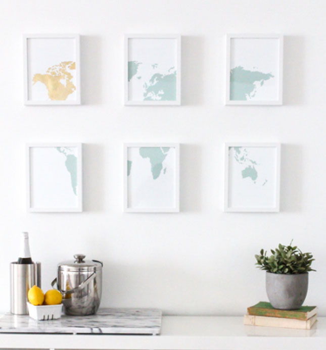 32. Gold Leaf Map Art: Make or win this gold leaf map artwork and frames from Third Floor Design Studio and Ikea! (via Sugar & Cloth)