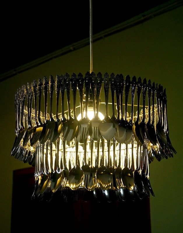 Plastic Spoon Pendant1. Plastic Spoon Pendant: My plastic spoon pendant lamp! I love it! .Free tutorial with pictures on how to make a recycled light in 1 step using feathers, hot glue gun, and silicone glue. How To posted by bisozozo. Difficulty: 3/5. Cost: Cheap. (via Cut Out and Keep)