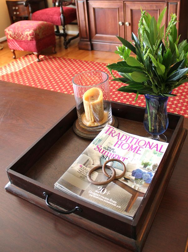 10. Wooden Tray: A discarded wood drawer finds new life as a chic tray used both for entertaining and to store magazines and decorative accessories on a coffee table. (via HGTV)
