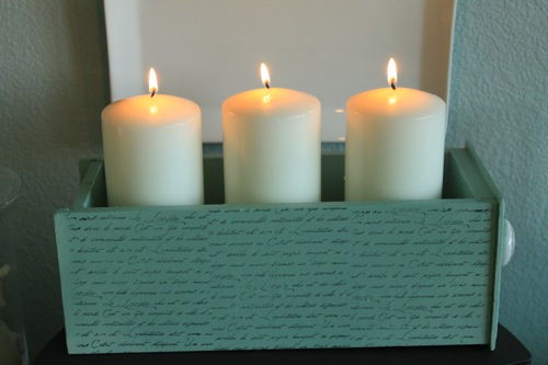 14. Old Drawer Candle Holder: Remember this drawer I found for a buck at the resale shop? Well, I got to thinking how this would make a great candle holder! Then my instinct was right, and stumbled upon this lovely color of spray paint Ohhh Catalina Mist, how I love you! I saw this shade at Hobby Lobby and (via Decorchick! ®)