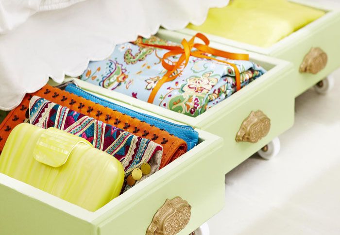 40. Attach casters and the drawers are easy to roll under the bed: Need help overcoming household clutter? Here are seven tips and tricks to create order in the house. (via Lowes)