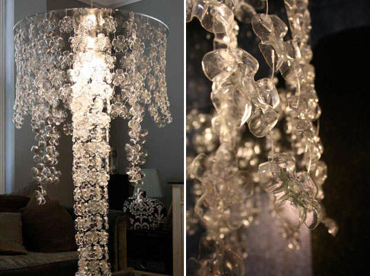45. Stunning Plastic Bottle Chandelier: One of the most stunning pieces at this year’s 100% Design was this gorgeous recycled plastic bottle chandelier by Michelle Brand. Composed entirely from cut-off bottle bases, it lit up the floor at (re)design’s Lighten Up exhibition, which showcased a selection (via inhabitat)