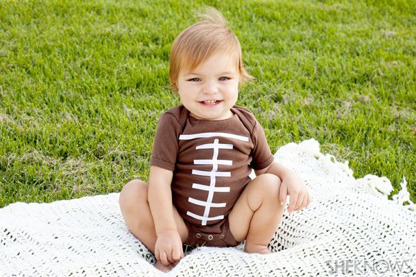 48. Football Onesie Costume: It’s time for tricks and treats! Before you blow a bundle on your baby’s costume, check out these DIY Halloween costumes made from onesies you may already have. (via She Knows)