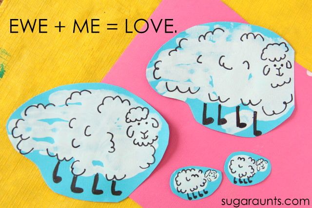 23. Handprint Sheep: Create homemade cards by kids for Valentine’s Day, Mothers Day, or any day with a sheep hand print and fingerprint art and an adorable saying like “I love ewe!” (via Sugar Aunts)