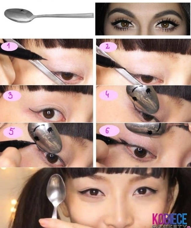 27. Use a spoon to get the perfect wing shape for your eyeliner (via sasakiasahi)