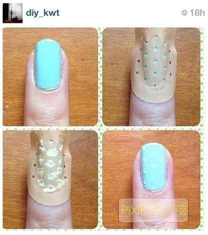 31. Polka Dot nails using a band-aid: Polka Dot nails using a band-aid Why didn’t I think of this! (via The Beauty Thesis)