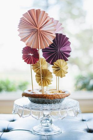 49. Pinwheel Cake Topper: Project By: Victoria Hudgins Photos By: Pictilio; Make a celebratory statement by topping your wedding cake and desserts with these bright and festive pinwheels. Make them large or small, individually or in mass to design a colorful element that fits your day perfectly. Make the pinwheel cake toppers by using origami paper (or thin scrapbook paper cut into squares)- each pinwheel uses three squares… (via Project Wedding)