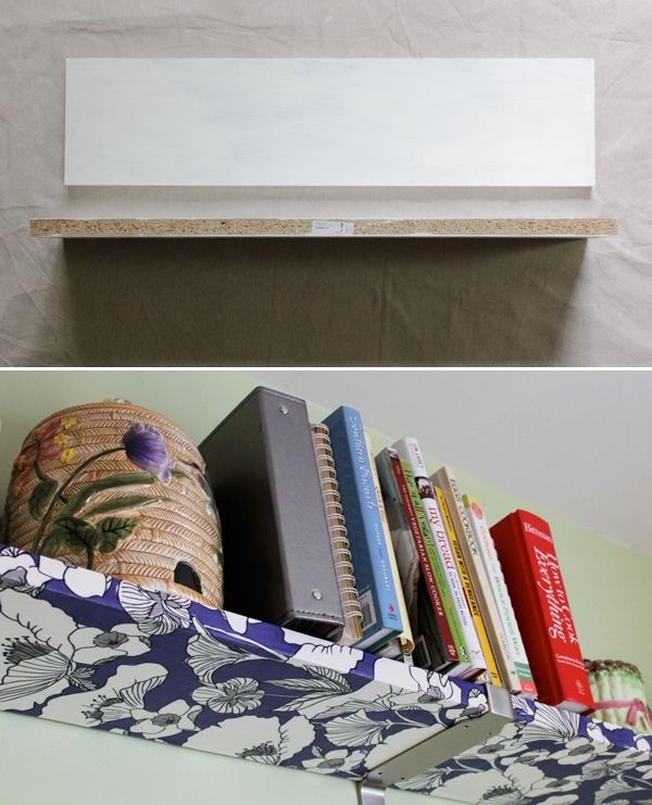 9. Decoupage Fabric onto Shelves: Give those boring shelves a complete makeover with Mod Podge Hard Coat and fabric – this is an easy and budget friendly project! (via Mod Podge Rocks)