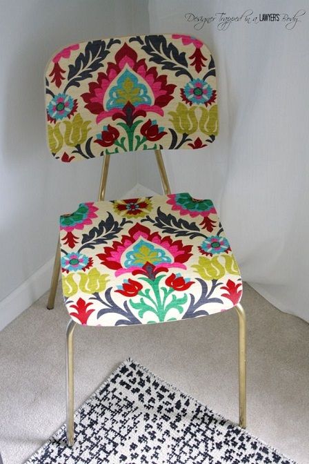 20. Upholster a Chair with Fabric: Come learn how to “upholster” a chair with fabric and mod podge for a BOLD look on a small budget! (via Designer Trapped)