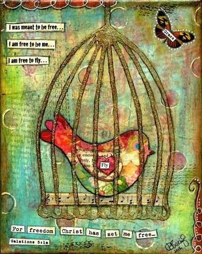 32. Freedom Bird in Cage Mixed Media: A fun tutorial anyone can do! (via A Creative Life)