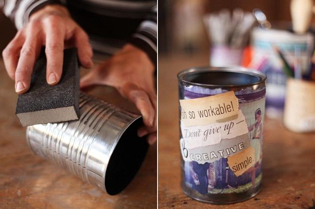 45. Decoupage Photo and Quote Cans: The experts at HGTV show you how to make use of empty cans by covering them with colorful images and favorite sayings. (via HGTV)