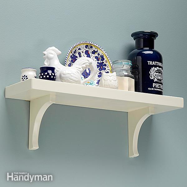 48. Simple Low-Tech Wall Shelf: Lots of kitchens have a little wall space that would be perfect for a storage or display shelf. Plenty of bathrooms do too. We wanted to design a shelf that anyone with basic tools could build. This shelf is a great project for a beginning woodworker, and since its so easy to adapt to different uses, a more advanced DIYer can have a lot of fun customizing it. (via The Family Handyman)