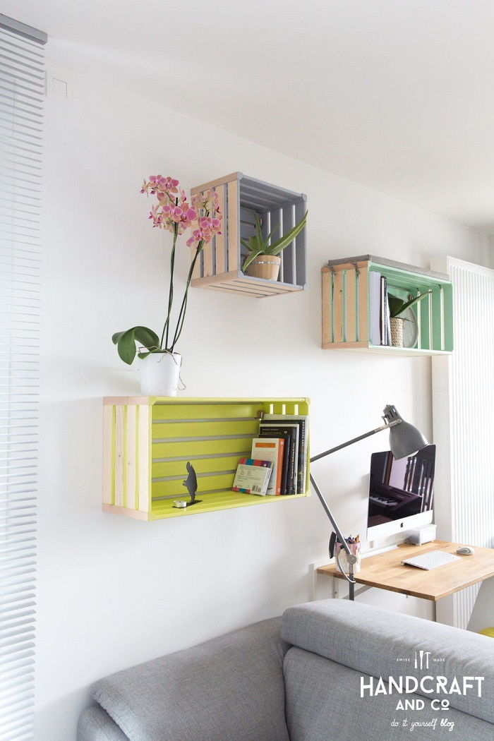 27. Colored Crates Floating Shelves: (via Handcraft and co)