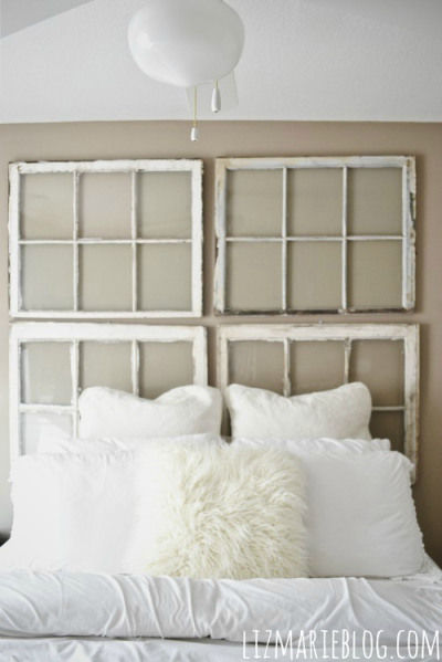 38. Antique Window Headboard: Come see how to make a simple & beautiful antique window headboard (via Liz Marie Blog)