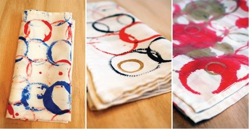 6. Painted napkins using izze soda bottles: Here is my tutorial for making painted napkins using an Izze soda bottle. This post perfectly sums up my crafting abilities and process. Generally when I create a tutorial there are tears, laughter and lots of little hands running away with stuff needed to complete the project. This was no exception. I often find myself (via Cupcakes and Cutlery)