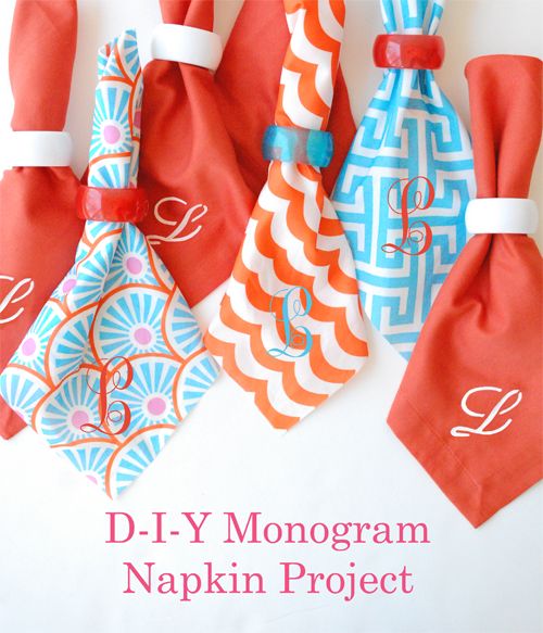7. Monogram Napkin Project: Kelly Lyden shares her step-by-step instructions for painting an initial monogram on cloth napkins, using Martha Stewart’s new craft stencil collection. This (via The Party Dress)