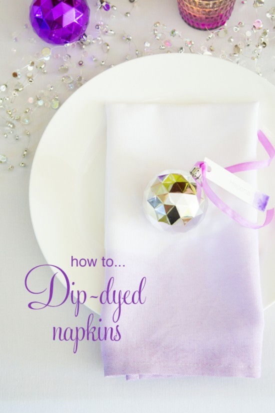 40. Ombre Dip-Dyed Napkins: This dip dyeing tutorial is a handy way to incorporate this look into your table setting! Of course the projects are perfect for your wedding but I thought I’d give the photo shoot a bit of a festive twist in keeping with the season. (via Polka Dot Bride)