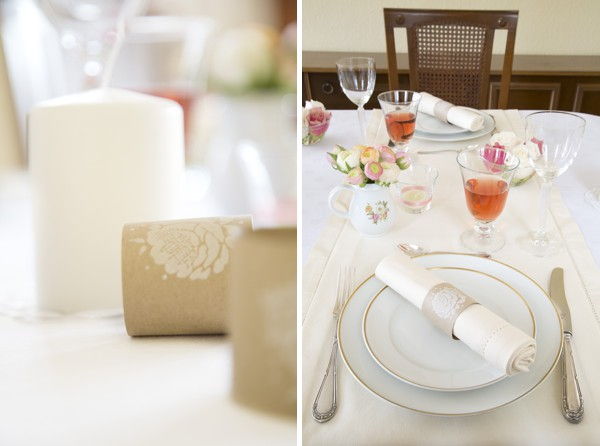 45. Stamped Kraft Paper Napkin Ring: Hello there, I am back with the first DIY from this mornings pale pink and cream spring table.Let me start by saying that I like it simple. Yes, I will immediately discard a recipe if it contains mo (via Belle and Chic)