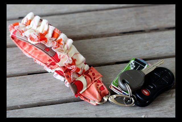 32. Ruffled Keychain Fabric Key Fob: Finally a tutorial for my Ruffled Keychain Fobs!! They’re a fabric wristlet that hooks to your keys, so you can wear them on your wrist, grab them easily, etc. I have been making these quite a while and always sell out of them when they’re listed in my Etsy Shop (I should probably stock (via Sugar Bee Crafts)