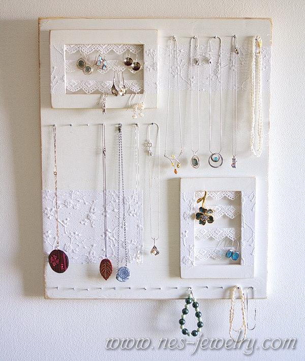 43. Shabby Chic Jewelry Organizer: My dear friend, Sophia, complained to me that her fine (via NES Studio)