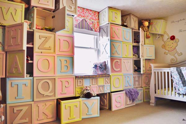50. Storage-Packed Nursery Decor: “I’ve been teaching myself carpentry and was Googling around for ideas to customize my newborn daughter’s bedroom. Every time I saw a project, I thought, I could do better. Finally, I decided to build a wall of oversize alphabet blocks from MDF and wood, many of which I constructed as cabinets, drawers, and nooks to hold her toys and clothes.”David Lucky Lebanon, Tennessee (via This Old House)