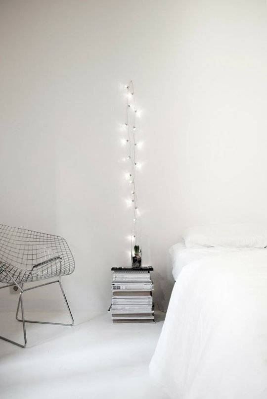 43 Hang a string light beside your bed instead of a table lamp for a modern look