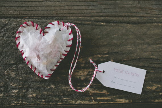 47. Handmade Heart-Shaped Tea Bags: Valentines Day is exactly one month away! This year I am excited to be bringing a whole slew of creative and easy ideas for celebrating the special day in a subtle, crafty style. Ive been busy pairing down the ideas and shooting projects to make for your man, your kids, and everyone else who might (via A Subtle Revelry)