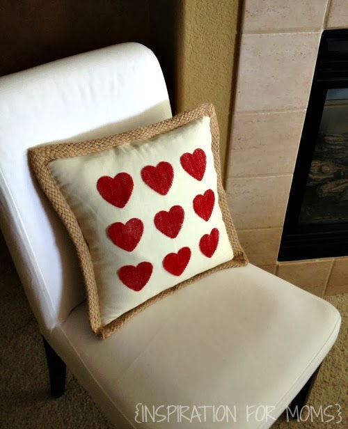 37. No-Sew Burlap Heart Pillow: Pin and Share! Thanks!1.3k161430Hey there! I absolutely love Valentines Day or as my family calls it Happy Love Day. Today I wanted to share a fun pillow tutorial with you.If you have been reading my blog for awhile, you know that I love easy crafts.Well folks, I don’t think this craft could be any easier! (via Inspiration for Moms)